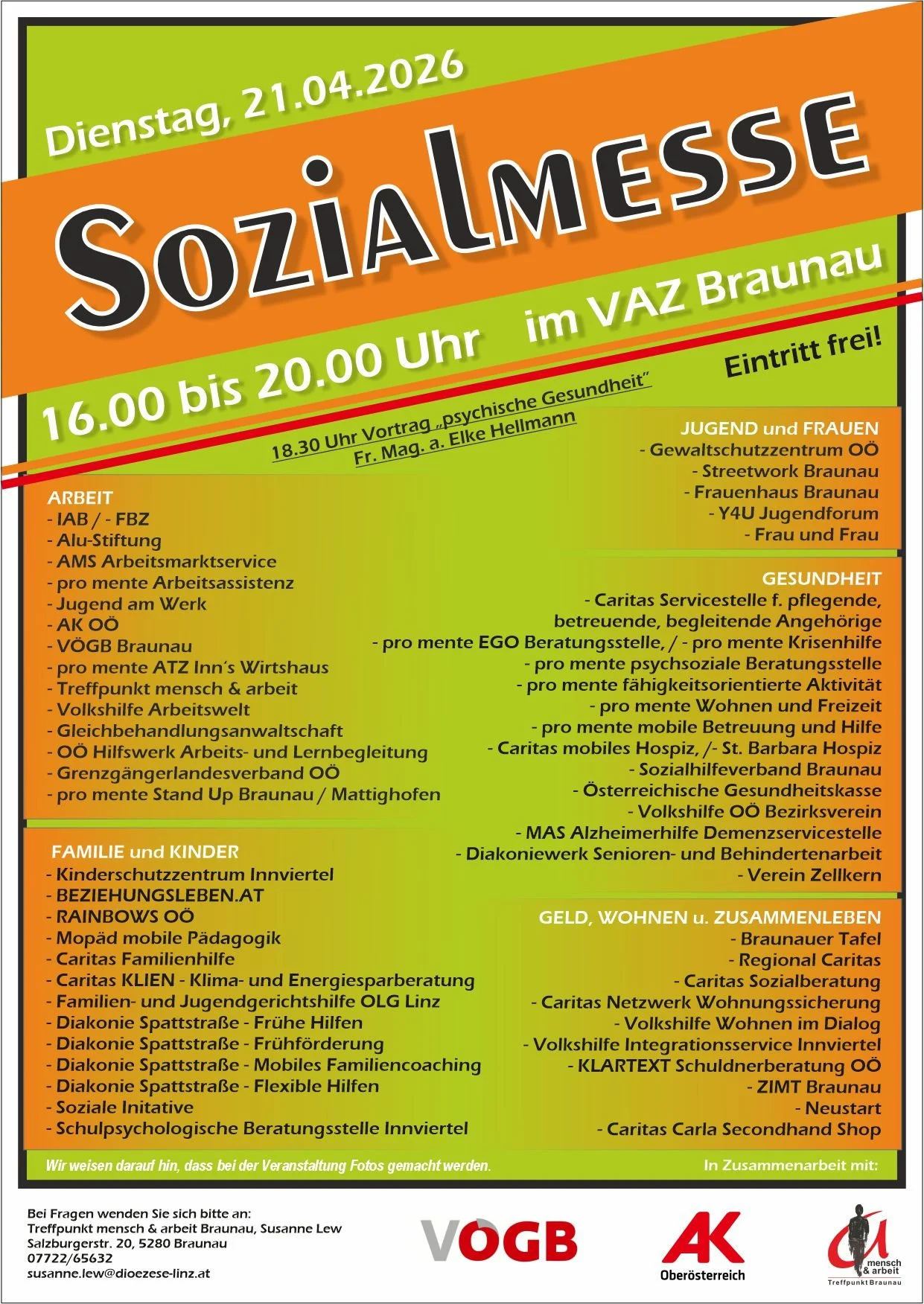 Sozialmesse im Braunau. Auch die Braunauer Tafel ist dort vertreten. (sh. Anhang)