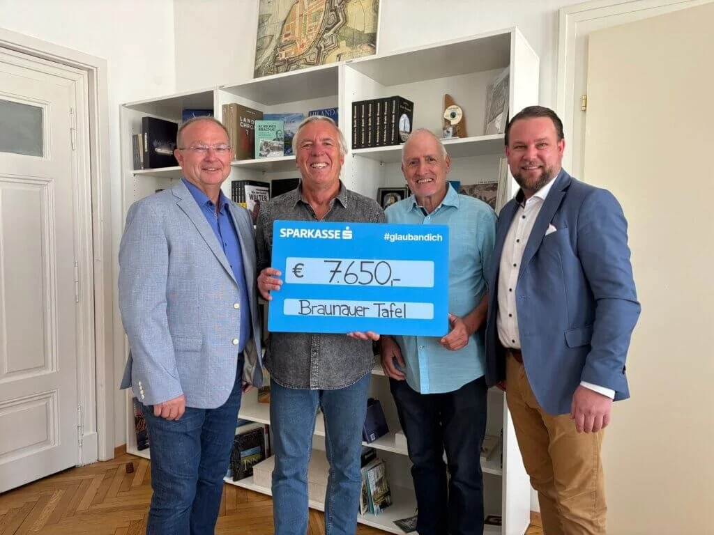 Auf Vorschlag der Stadt Braunau übergab die Sparkasse Braunau auch heuer wieder eine Spende in Höhe von € 7.650.– an die Braunauer Tafel.
